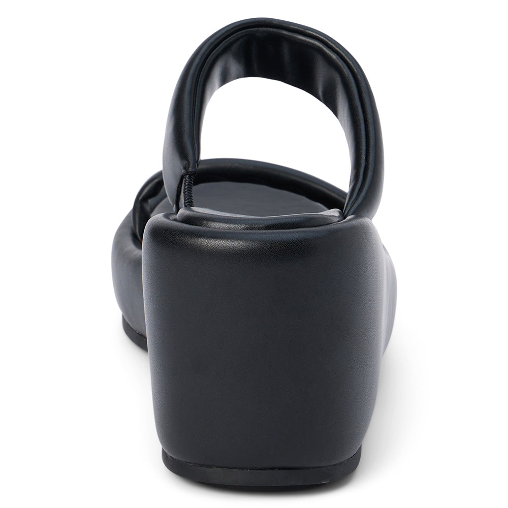 A little height, a lot of comfort, and endless style — the Unique Wedge Sandal in Black is your new go-to for effortless, everyday glamour. With its sleek silhouette and soft faux-leather finish, this sandal brings that perfect blend of casual chic and wear-all-day ease.